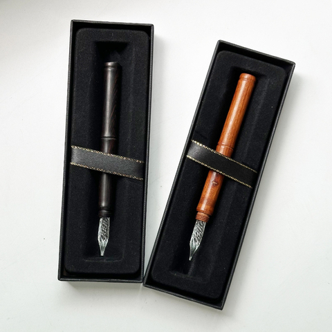 Özel abanoz ve kırmızı sandal cam-nib kaligrafi kalemi hediye seti