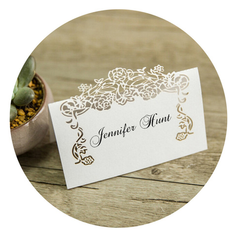 Kişiselleştirilmiş yer kartları lazer gül şekli kesim yer kartları düğün konuk için yer kartı restoranlar ziyafet akşam yemeği partileri