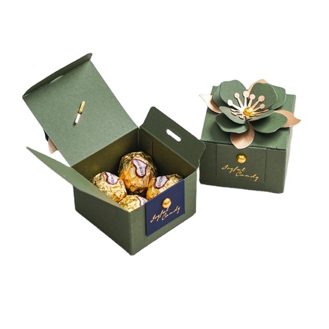 Yüksek dereceli DIY kişiselleştirilmiş 2.5 inç yeşil kare kağıt doğum günü partisi düğün Favor teşekkür ederim şeker kutusu ile çiçek dekor